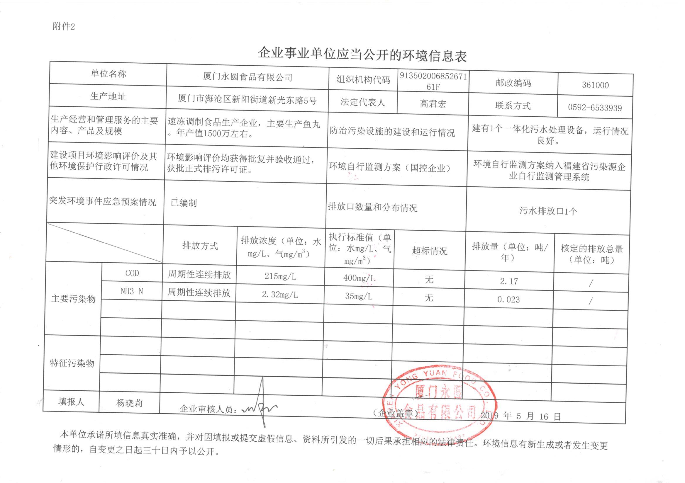 永圓食品環(huán)境信息表